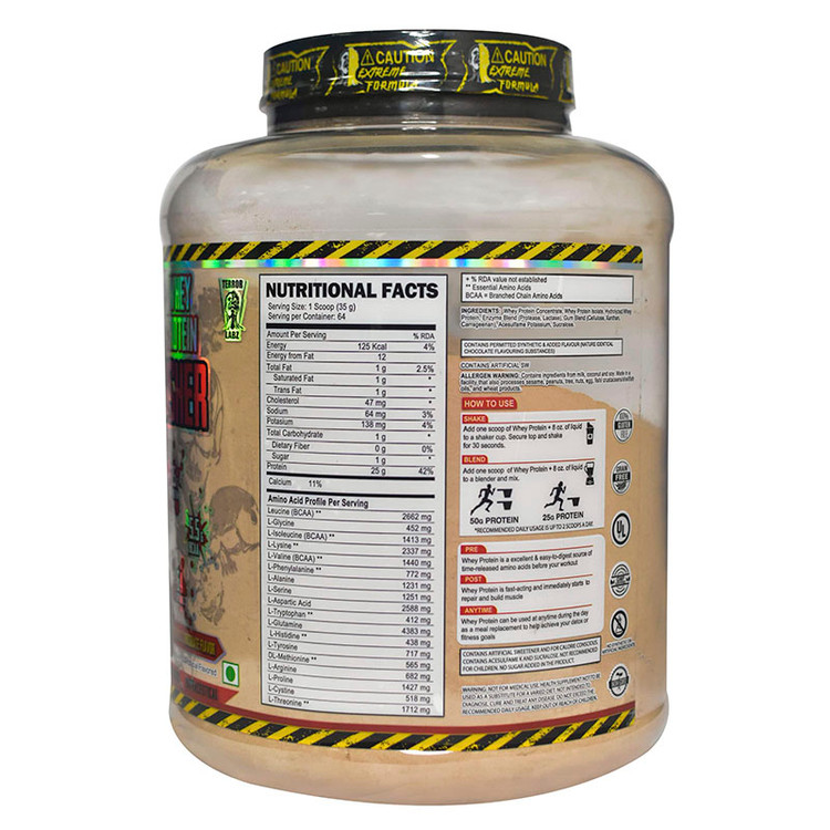 هر پیمانه پودر مکمل پروتئین وی TERROR LABZ با 25 گرم پروتئین وی زود جذب تولید شده است تا بتوانید پروتئین مورد نیاز خود را در هر زمان از روز تامین کنید .
