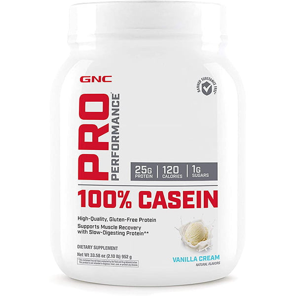 پروتئین دیر جذب کازئین GNC حاوی 25 گرم پروتئین است که اسیدهای آمینه کند و پیوسته ای را برای رشد و قدرت عضلات در طی ساعات طولانی فراهم میکند.