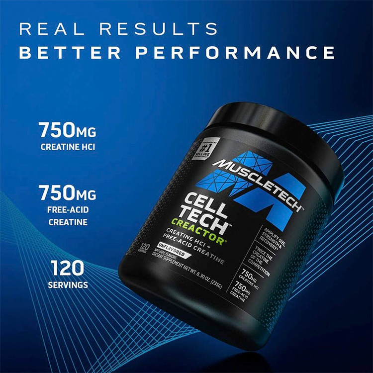 MuscleTech Cell-Tech Creactor یکی از پرفروشترین مکملهای کراتین بدنسازی است که برای ورزشکاران حرفهای و مبتدی طراحی شده است. این محصول با ترکیبی از کراتین مونوهیدرات، کراتین HCl، کربوهیدراتهای سریع و پیچیده، و اسیدهای آمینه به افزایش قدرت، حجم عضلانی و ریکاوری سریع بعد از تمرین کمک میکند.
