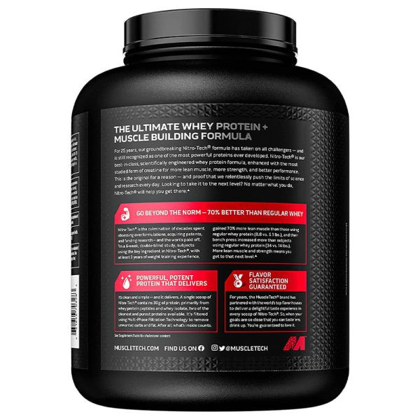 پروتئین نیتروتک 4 پوندی ماسل تک بصورت علمی فرموله شده از پپتاید پروتئین + وی ایزوله برای ایجاد توده عضلانی بدون چربی است و برای همه ورزشکارانی که بدنبال عضله ، قدرت و عملکرد بهتر هستند طراحی شده است.