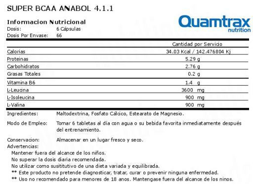 SUPER BCAA 4.1.1 ADVANCED 200 TABLS. (QUAMTRAX)