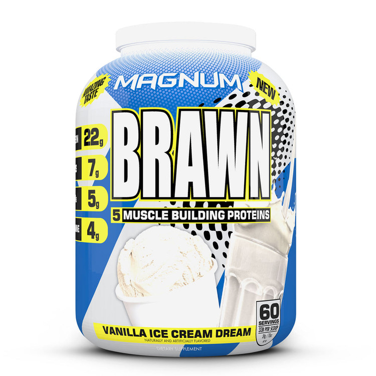 مگنوم براون با بهترین منابع پروتئین های با کیفیت بالا فرموله شده است و در نتیجه یک شیک پروتئینی با طعمی باورنکردنی ایجاد می شود که به آرامی مخلوط می شود. براون برای ورزشکارانی طراحی شده است که به دنبال سیل سریع آمینو اسیدها در مدت کوتاهی پس از مصرف، و همچنین چکیدن اسیدهای آمینه در چند ساعت آینده هستند که رشد و ترمیم عضلات را تضمین می کند. دو قاشق از براون 44 گرم پروتئین و 14 گرم کربوهیدرات ایده آلی را که بدن شما به آن نیاز دارد و برای محافظت از پروتئین ها استفاده می کند، وارد ماهیچه های شما می کند و آنها را برای عملکردهای اصلی خود در دسترس قرار می دهد. مگنوم براون بدون گلوتن، بدون بادام زمینی، دارای لاکتوز بسیار کم و برای معده ملایم است. براون موثر، مقرون به صرفه است و دقیقاً همان چیزی است که بدن شما برای تقویت قدرت، عضله سازی بیشتر و ریکاوری بسیار سریعتر به آن نیاز دارد! ایجاد و ترمیم بیشتر عضلات با جذب سریع و هضم سریع بهبود سریع تر طعم دسر خوشمزه براون برای مردان و زنان فعالی طراحی شده است که خواهان پروتئین با کیفیت بالا برای به حداکثر رساندن سود عضلانی خود با قیمتی مقرون به صرفه هستند. PentaPro Blend Magnum Brawn 5 پروتئین با کیفیت موجود از جمله کنسانتره پروتئین آب پنیر میکروفیلتراسیون سرد، کنسانتره پروتئین آب پنیر اولترافیتراسیون سرد، ایزوله پروتئین آب پنیر میکروفیلتراسیون غشایی جریان مماس، ایزوله آب پنیر هیدرولیز شده آنزیمی و ایزولات سفید تخم مرغ را ارائه می دهد. QuinCarb Matrix Magnum Brawn حاوی 5 شکل مختلف کربوهیدرات پیچیده برای کمک به ریکاوری و اطمینان از استفاده پروتئین شما برای ساخت عضله بدون چربی است. مزایای اضافه شده Magnum Brawn شامل 22 گرم پروتئین، 7 گرم کربوهیدرات، 5 گرم BCAA و 4 گرم گلوتامین در هر وعده است