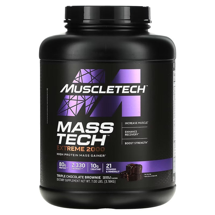 تیم تحقیق ماسل تچ آمریکا مکملی طراحی کرده است که مناسب برای هر فردی است که به دنبال افزایش وزن به مقدار زیاد است . مس تک اکستریم ۲۰۰۰ حاوی ۸۰ گرم پروتئین ، بیش از۴۰۰ گرم کربوهیدرات و ۲۰۰۰ کالری وزن دهنده به علاوه ۸ گرم آمینو اسید شاخه ای ال لوسین ، ۱۰ گرم کراتین و ۲۰ نوع ویتامین و مواد معدنی می باشد . استفاده از ماکرونوترین در مکمل کربو پروتئین مس تک جدید ماسل تک برای بدنسازان و ورزشکارانی مناسب است که به دنبال عضله سازی و و افزایش قدرت عضلانی هستند بدون اینکه بدنشان چربی اضافه دریافت کند . مکمل مس تک اکستریم ۲۰۰۰ ماسل تک ، تمام چیز های لازم برای ساخت عضلات خشک ، افزایش قدرت و افزایش وزن به مقدار دلخواه شما را داراست .