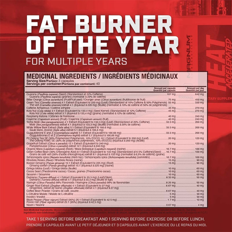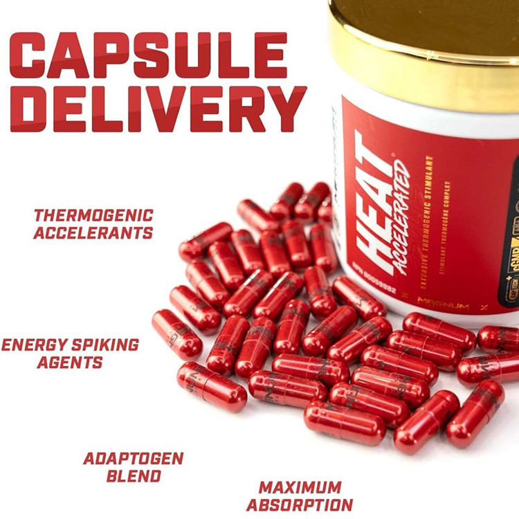 چربی سوز هیت اکسلریتد مگنوم 30 ماده چربی سوز را برای حمایت از محیط بهینه برای چربی سوزی ترکیب می کند. هیت اکسلریتد با تزریق عوامل ترموژنیک و محرک های طبیعی، دمای مرکزی بدن را برای کاهش چربی افزایش می دهد.
