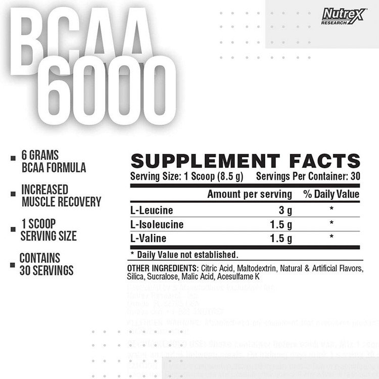 ✔ ویژگی های BCAA 6000 Nutrex :