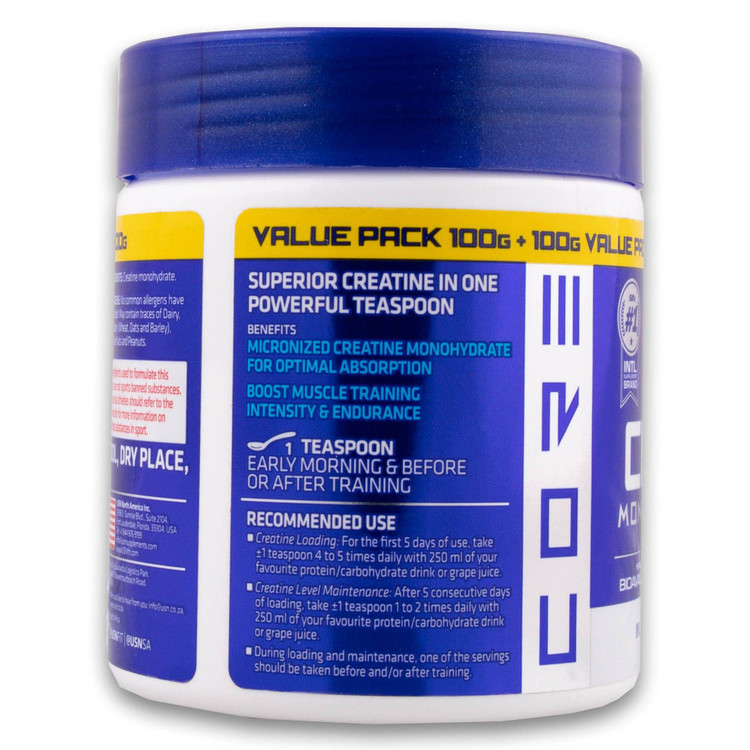 هر وعده ( ½ پیمانه / 3 گرم ) حاوی 3 گرم کراتین منوهیدرات