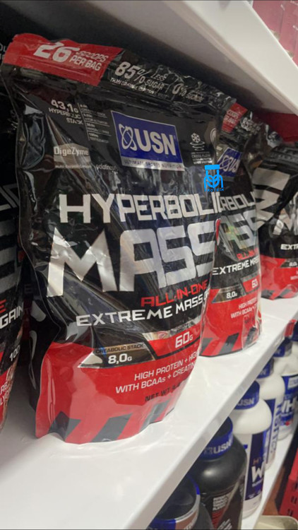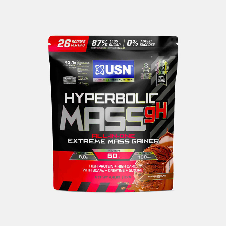 Hyperbolic Mass یک افزایش دهنده جرم همه کاره است که برای افرادی با متابولیسم سریع طراحی شده است. این حاوی یک فرمول اسید آمینه پیشرفته از جمله افزودن گلوتامین برای کمک به ترمیم، بازیابی و افزایش عضلات است. پروتئین بالایی دارد و دارای سیستم گلیکومتریکس 4 مرحله ای برای آزادسازی پایدار انرژی و انتقال موثر مواد مغذی است. بتا آلانین برای افزایش عملکرد و قدرت در فرمولاسیون گنجانده شده است. طعم شکلات مالت دار دارای گواهی حلال نیست.