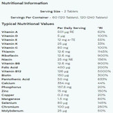 ❿ حاوی کلسیم ، ویتامین D ، اسید پانتوتنیک ( ویتامین B5 ) ، سلنیوم ، بیوتین ، تیامین ، ویتامین C ، روی ، ویتامین B6 و مس