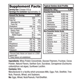دارای 52 گرم (46 درصد) پروتئین Whey (آب پنیر) با کیفیت بسیار بالا