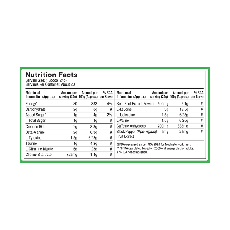 24 گرمی Pre JYM به طور قابل توجهی بزرگتر از اسکوپ معمولی 5-10 گرمی سایر تمرینات قبل از تمرین است. این به این دلیل است که قرار دادن تمام مواد مغذی مورد نیاز برای بهینه سازی تمرین خود در چنین اندازه کوچک غیرممکن است. سایر محصولاتی که وعده های کوچکتر را ارائه می دهند، یا مواد حیاتی مورد نیاز برای سوخت رسانی به تمرینات تولید کننده را حذف می کنند، یا کمتر از مقدار مصرف می شوند. با Pre JYM میتوانید مطمئن باشید که مقادیر مناسبی از حیاتیترین مواد را دریافت میکنید که پشتیبانی آموزشی همهجانبه را برای دستاوردهای پایدار فراهم میکنند.