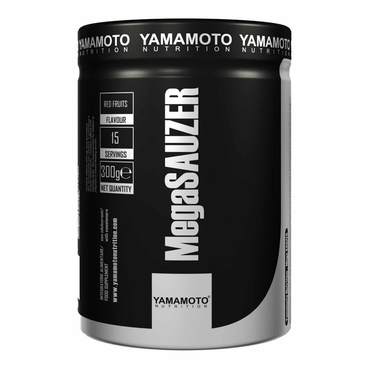 مگا سائوزر | Mega SAUZER یاماموتو نوتریشن | YAMAMOTO NUTRITION یک مکمل قبل تمرین بر پایه سیترولین مالات، بتا آلانین، آرژنین آلفا-کتوگلوتارات، تائورین، آمینو اسید های شاخه دار BCAA، ویتامین B6، ویتامین B12، ویتامینC ، عصاره های گیاهی، کافئین و دیگر مواد مغذی ساخته شده است.