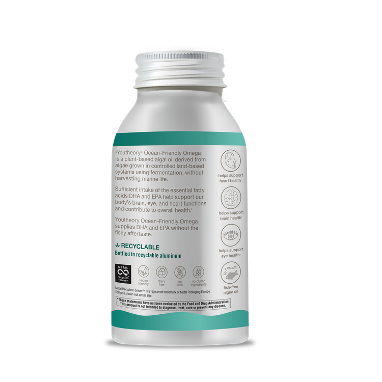 Youtheory® Ocean-Friendly Omega همان اسیدهای چرب ضروری روغن ماهی را فراهم می کند، اما بهتر است. چرا؟ زیرا از گیاهان ساخته شده است نه ماهی. امگای دوستدار اقیانوس که از جلبک هایی که ماهی ها امگا 3 خود را دریافت می کنند، مشتق شده است، منبع بسیار قوی و پایدارتری از EPA و DHA است. به علاوه، بدون مزه ماهی!